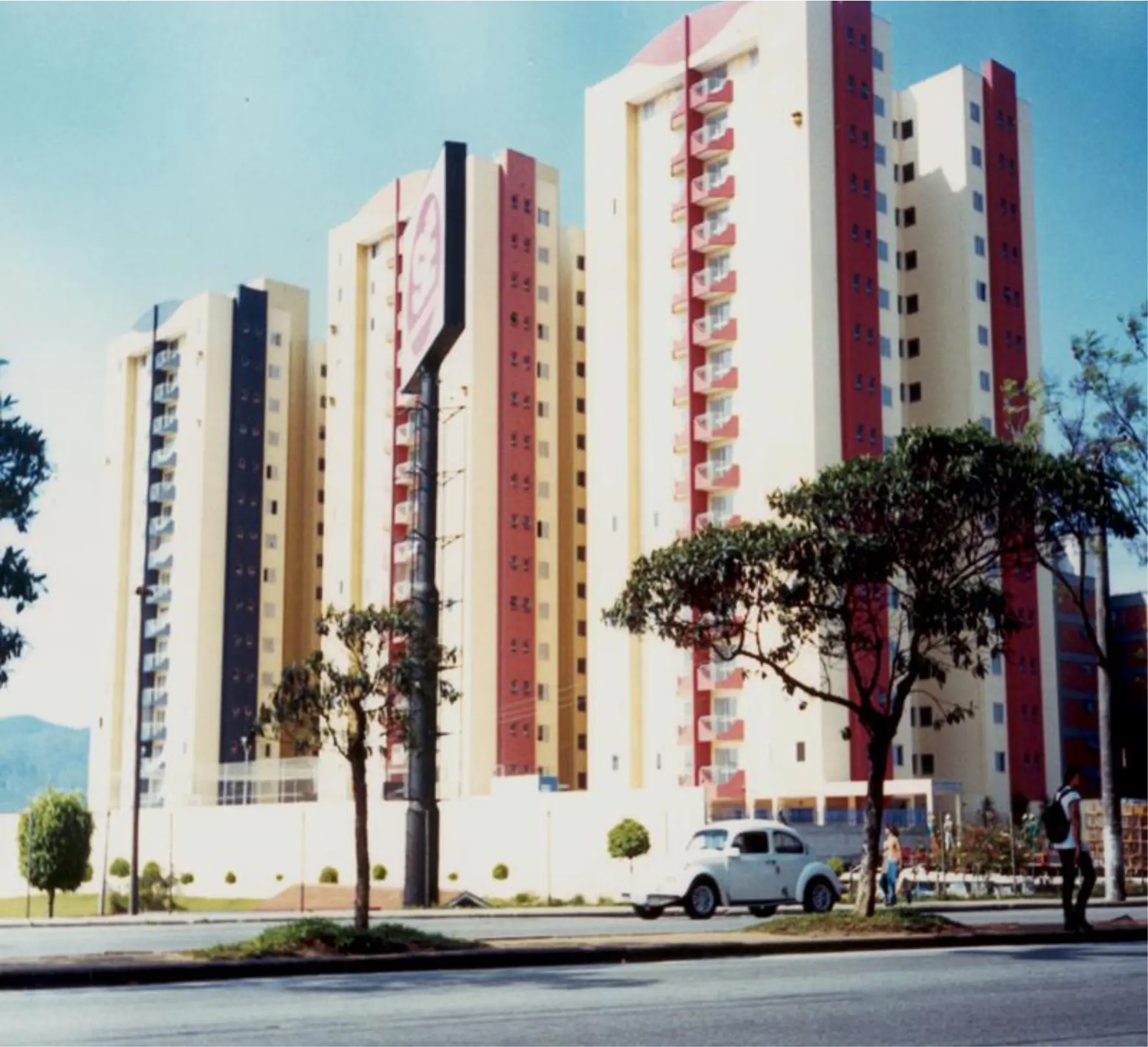Empreendimento composto de 05 torres de 05 pavimentos de apartamentos de 02 e 03 quartos, sendo 01 suíte, totalizando 160 unidades, com quadra poliesportiva, playground, quiosque de churrasco, academia e espaço para administração, salão de festas, piscinas e duchas.